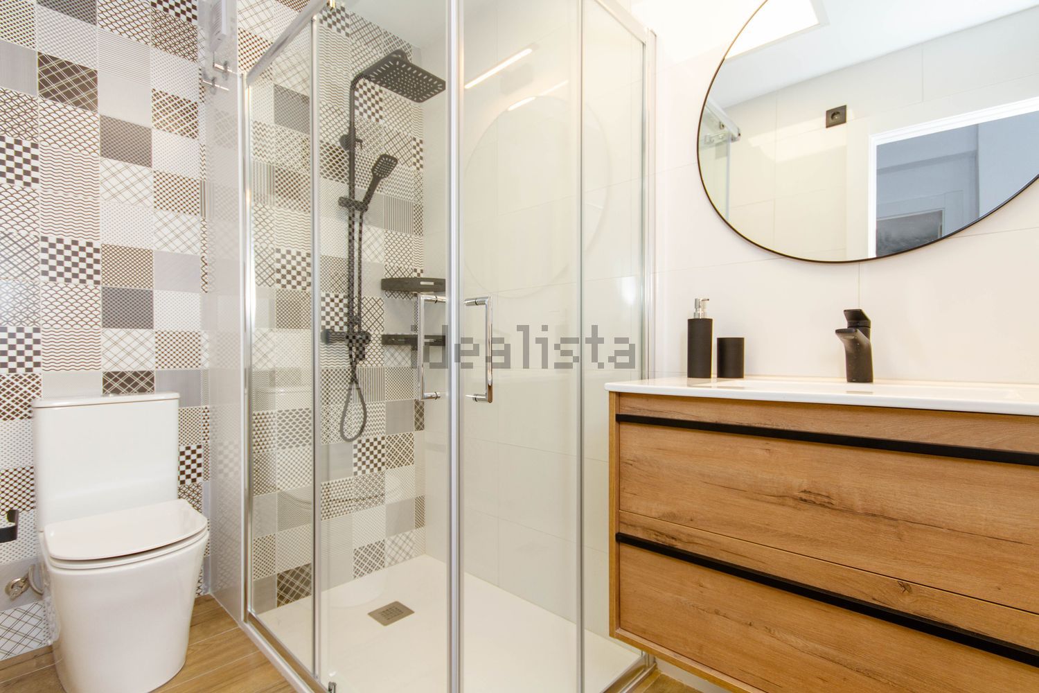 El baño, pequeño pero confortable con plato de ducha y mampara de 80×120 cm.